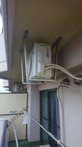 ↓ 室外機が天吊りで…2人でないとワタシには できませんでした。お助け感謝しております。