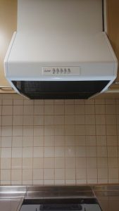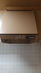 ↓ 交換前です。ダクトがレンジフード側面に穴を開けて